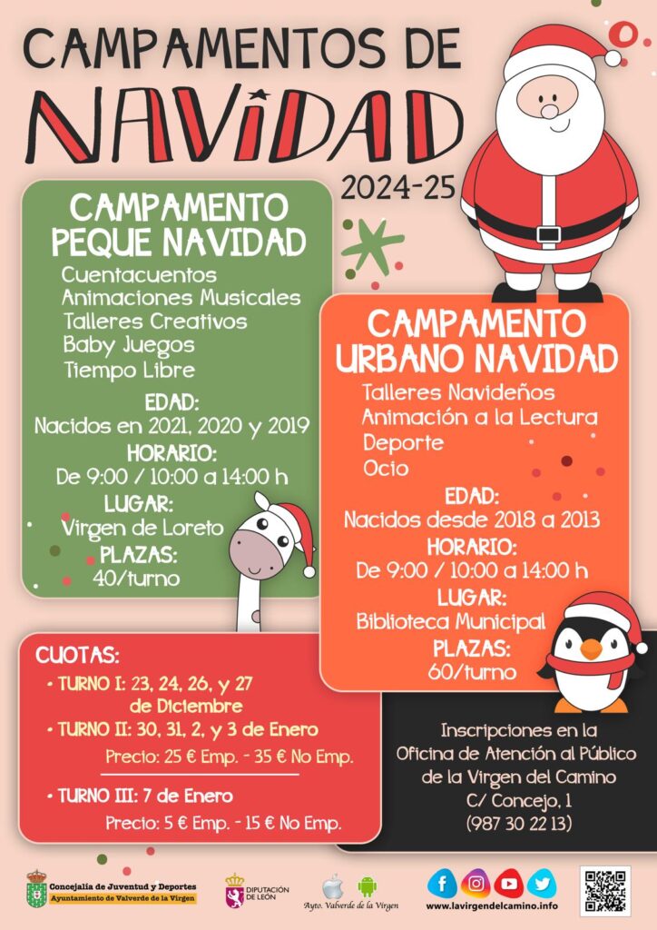 La Concejalía de Juventud de Valverde de la Virgen pone en marcha un año más los Campamentos de Navidad para niñ@s en edades comprendidas entre los 3 y 12 años, en horario de 09:00 a 14:00 horas.